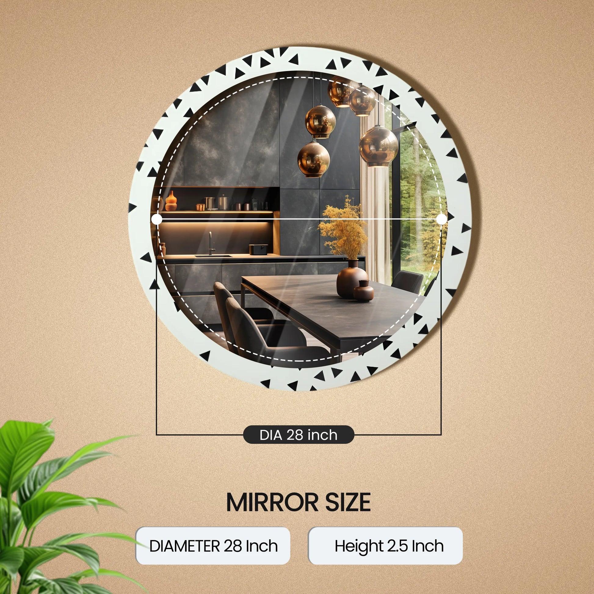 Unlike typical mirrors, this piece is more than just reflective—it's functional wall art. The minimalist round silhouette paired with the contrast-rich triangle bone inlay makes it an instant favorite for lovers of boho interiors, modern eclectic décor, or monochrome aesthetics.