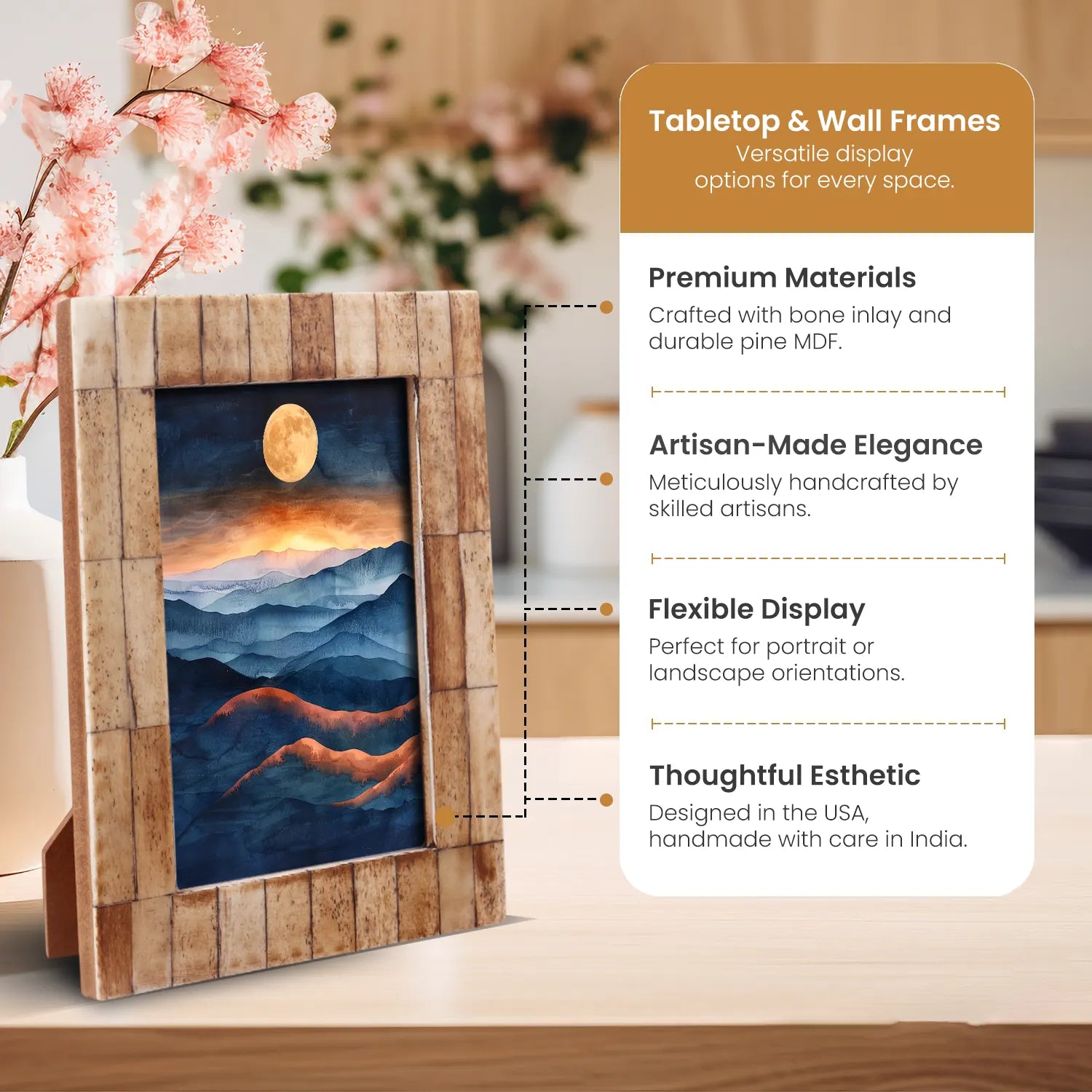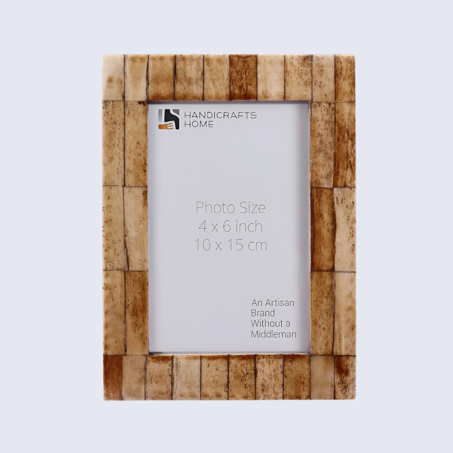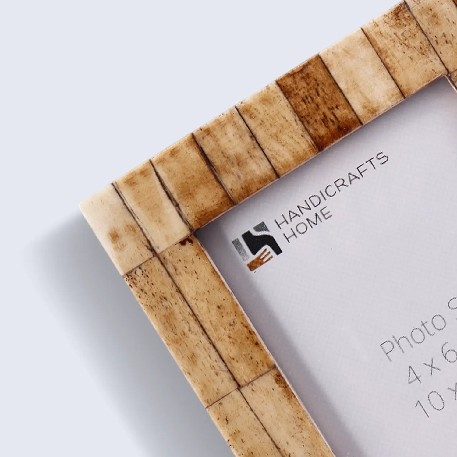 Bring timeless artistry into your space with the Handicrafts Home Picture Frame, handcrafted using authentic bone inlay set against a rich brown background. Carefully mounted on durable Pine MDF, each frame is a unique piece that reflects traditional craftsmanship and ethical sourcing. With a natural texture and vintage-inspired design, this decorative picture frame combines heritage elegance with modern home decor trends.
