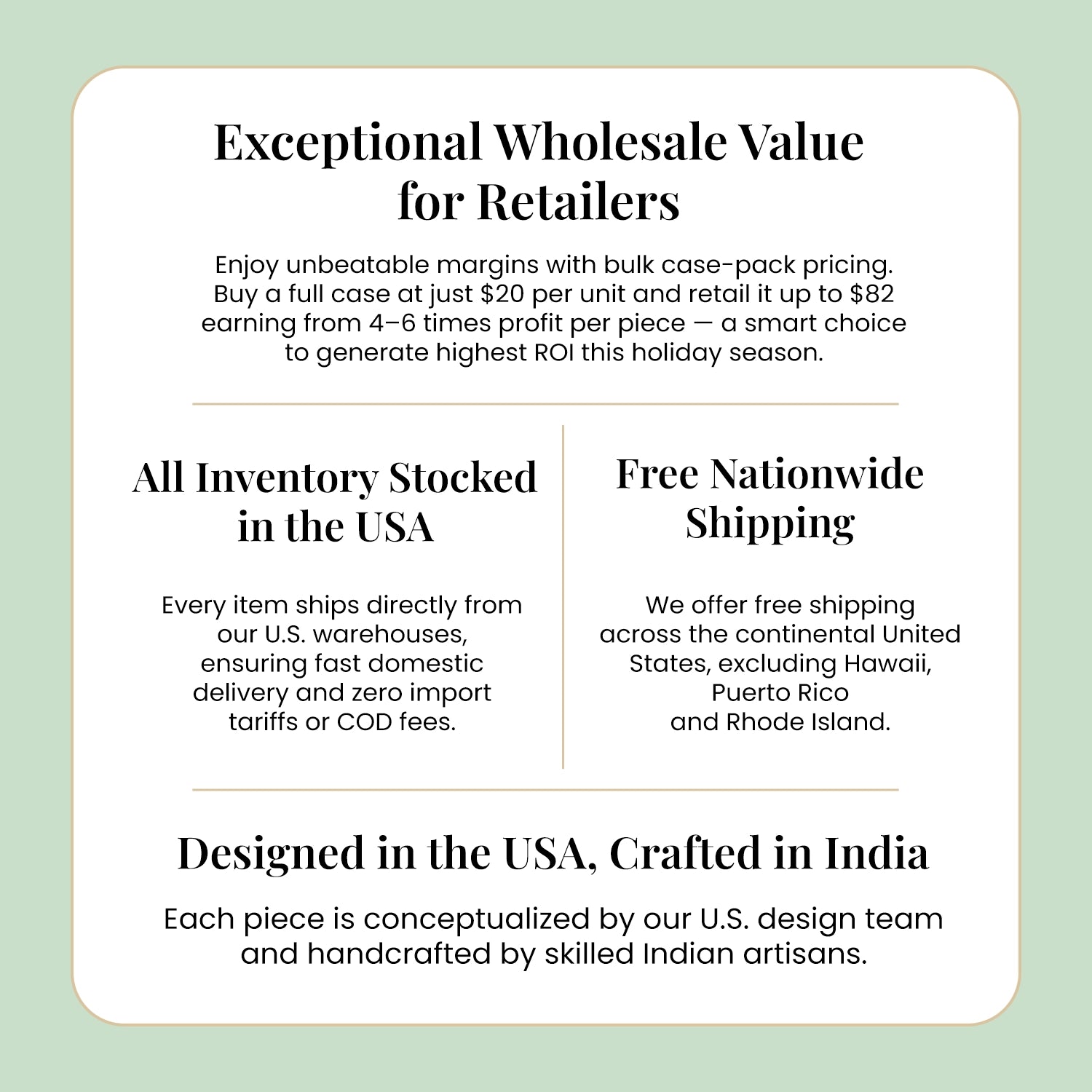 Exceptional Wholesale Value for Retailers – Enjoy unbeatable margins with bulk case-pack pricing. Buy a full case at just $20 per unit and retail it upto $82, earning from 4–6 times profit per piece — a smart choice to generate highest ROI this holiday season.