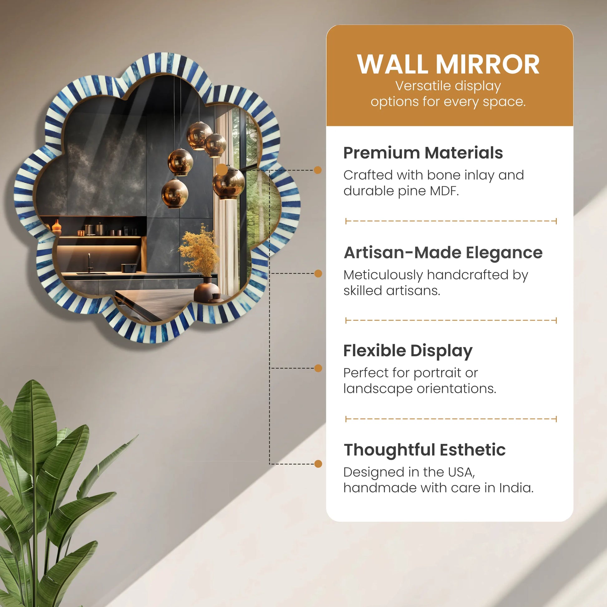 Handmade Blue & White Bone Inlay Scalloped Wall Mirror – 18 inches
