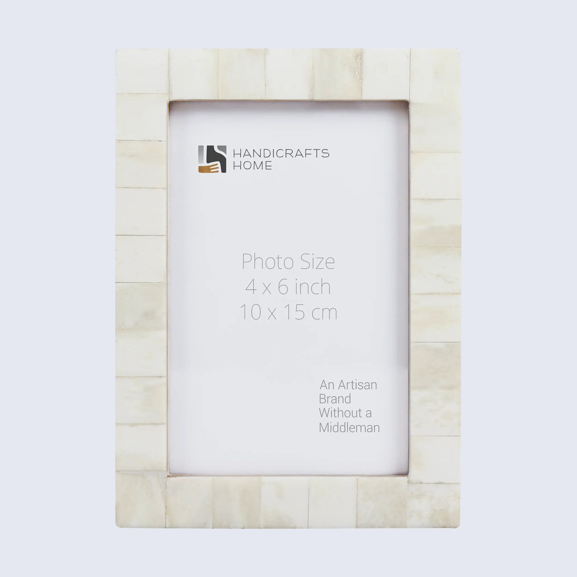 Showcase your cherished memories in style with this beautifully handcrafted Classic Collection Bone Inlay Picture Frame from Handicrafts Home. Designed to add a unique touch to any space, this 4x6 inch frame blends artisan quality with modern boho and farmhouse charm — perfect for creating a warm, stylish vibe in your living room, bedroom, office, or gallery wall.